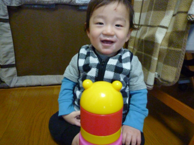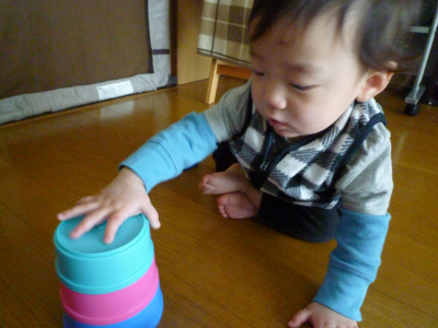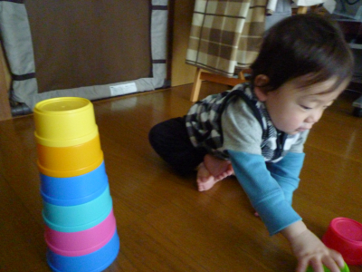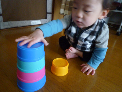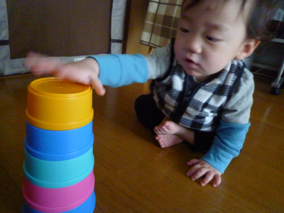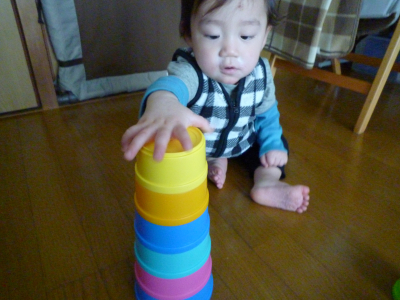 最初は、親が積み重ねたコップを破壊して楽しんでいたのが、成長したものです^^