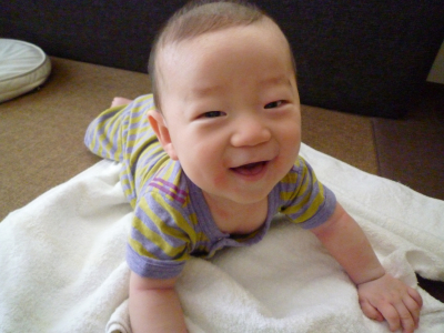 ずりばい習得から1ヶ月経たない間に、お座りも出来る様になりました。